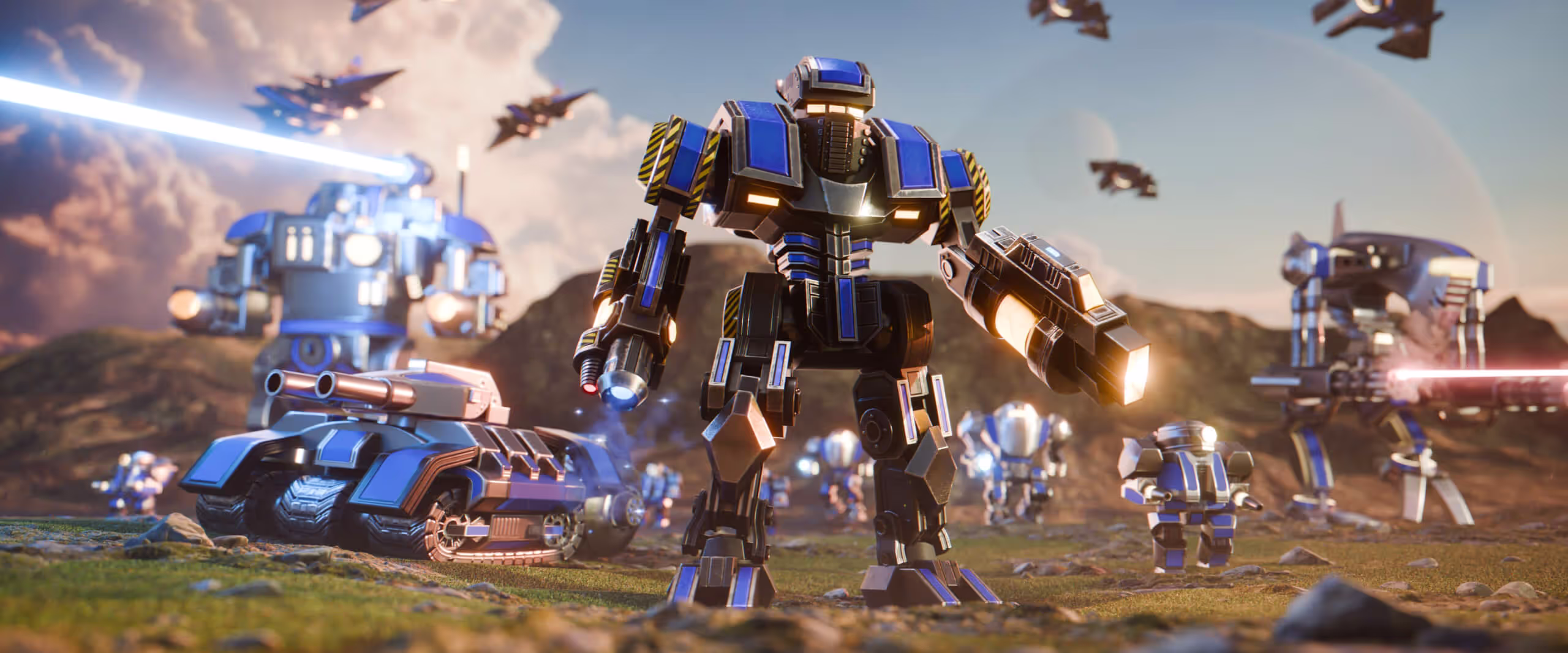 Your power lies in the careful balance of exponentially growing your resource income and the production of devastating war machines.