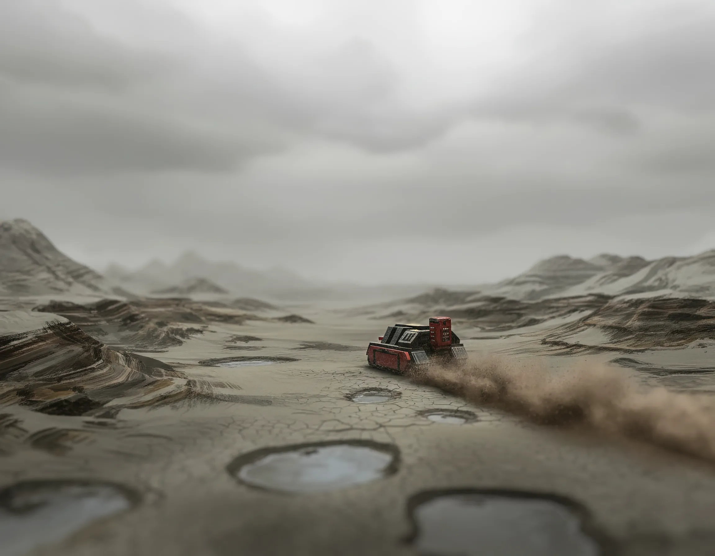 No easily obtainable solution for the gravity breaking our spines. Although... if we return to civilization, I should endorse Koan for promotion for the absurd, unauthorised idea of releasing our Muskrat before our smashing to the surface. I was really pissed off at first, learning about how me losing our cargo was his deliberate doing, but he bore the Burden of responsibility with ease by knowing his craft really well. I pity the Armadians for having rejected a man that is able to drop several tonnes of non-aerodynamic weight and successfully hit a body of water that he aimed at, all during a turbulent emergency landing. Besides, the damn thing must be truly favoured by the All-Father, it achieved the surface much better than we did. The upgrades he and Suther commissioned in Heliand Registry before embarking did an amazing job. The suspension holds despite dealing with triple the load and it looks like the planet's surface is compressed enough not to swallow our vehicle even while not submerged. Whatever damage the Muskrat sustained, Koan made it go away enough for us to achieve mobility.