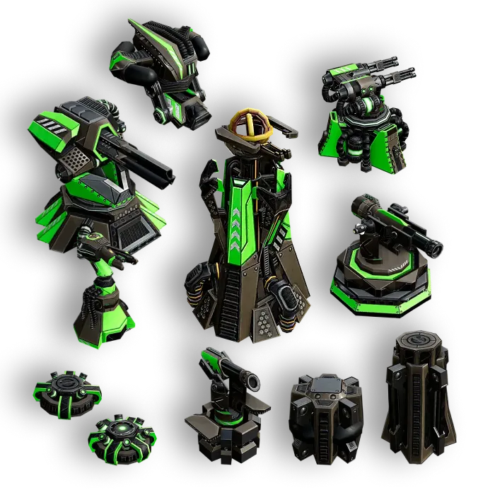 All other buildings for resources, radar, and other strategic abilities.