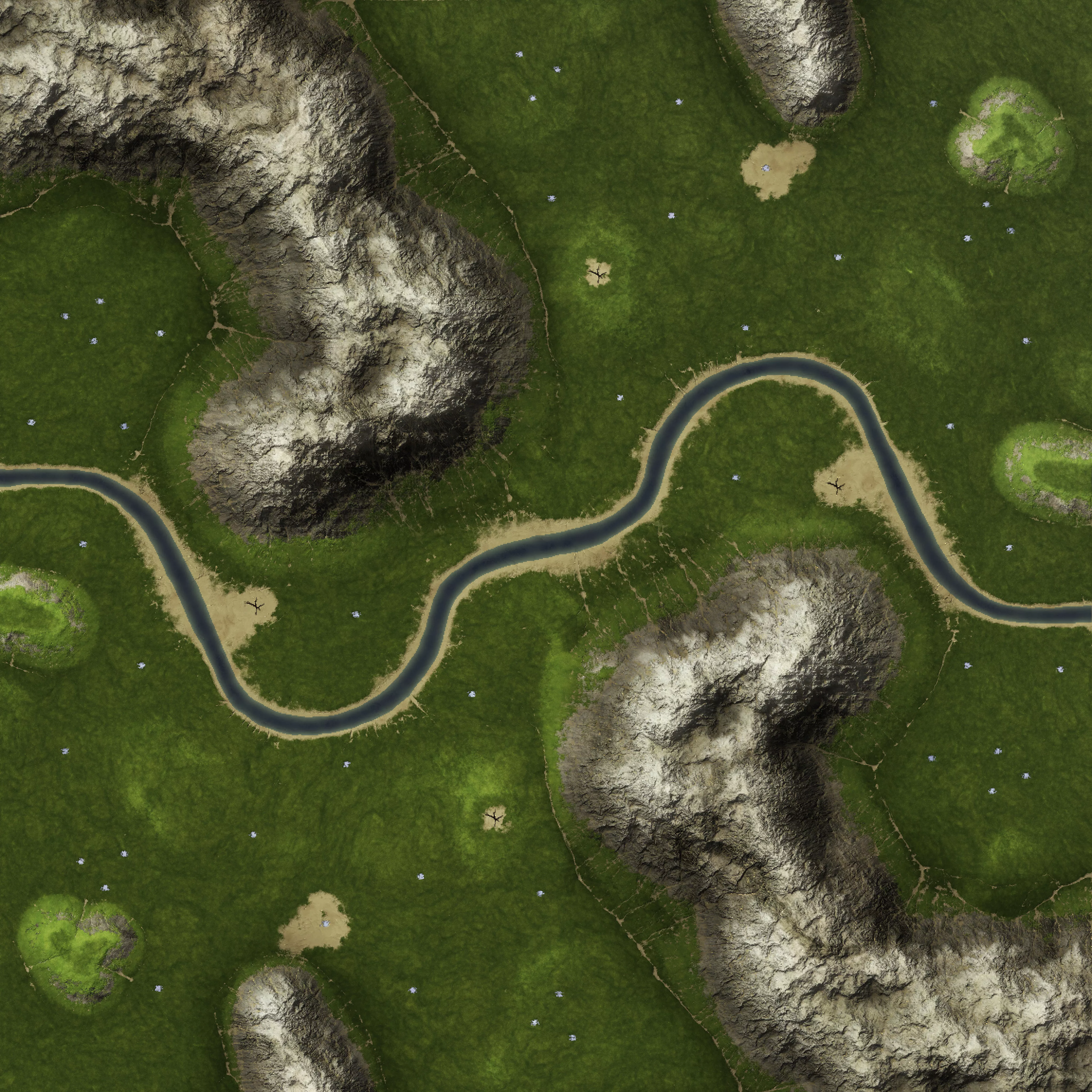 Large map for teamplay up to 3v3 with one big chokepoint in the center.