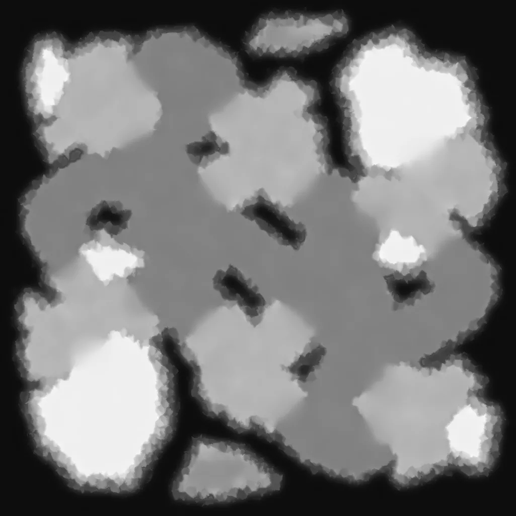A frozen island with icey plateaus and multiple pathways to the center.