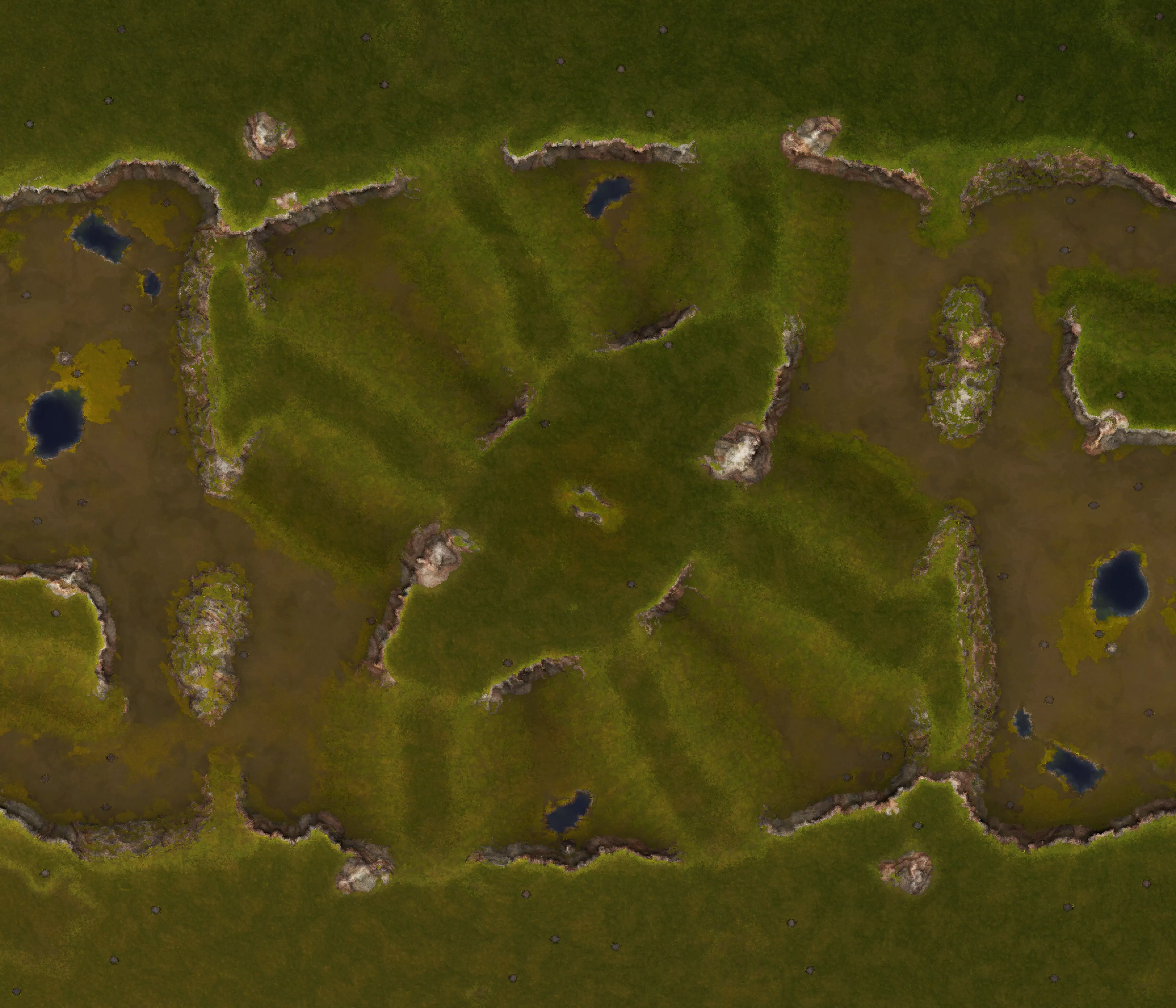 Fight over the numerous ridges leading to the central hill. A good fit for 1v1-3v3 games, inspired by the Starcraft map Heartbreak Ridge.