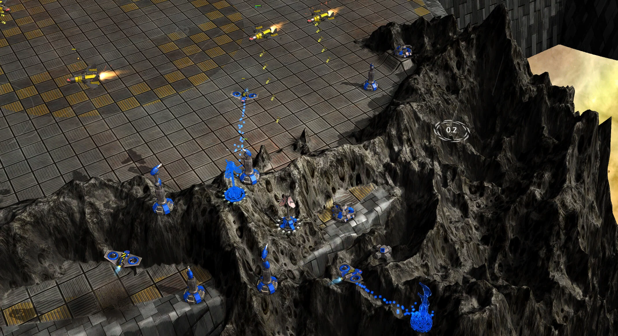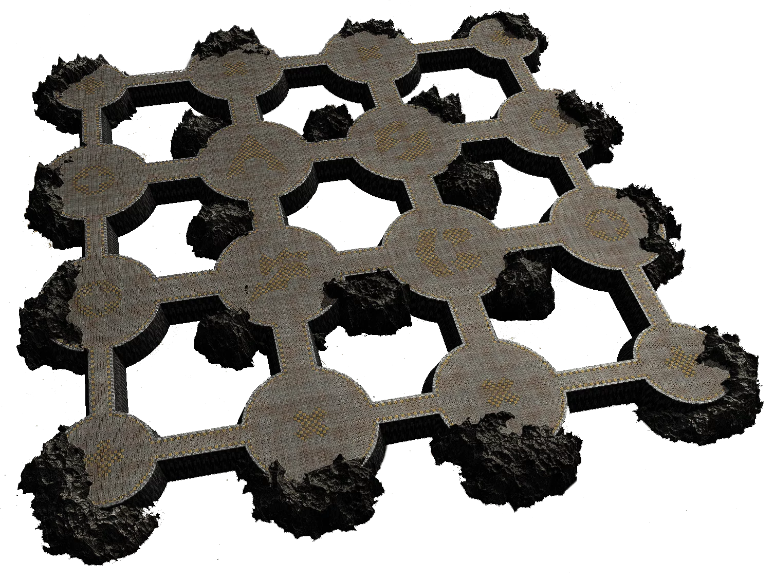 Metal map with strong solar wind, with impassable empty space between the metal structures.