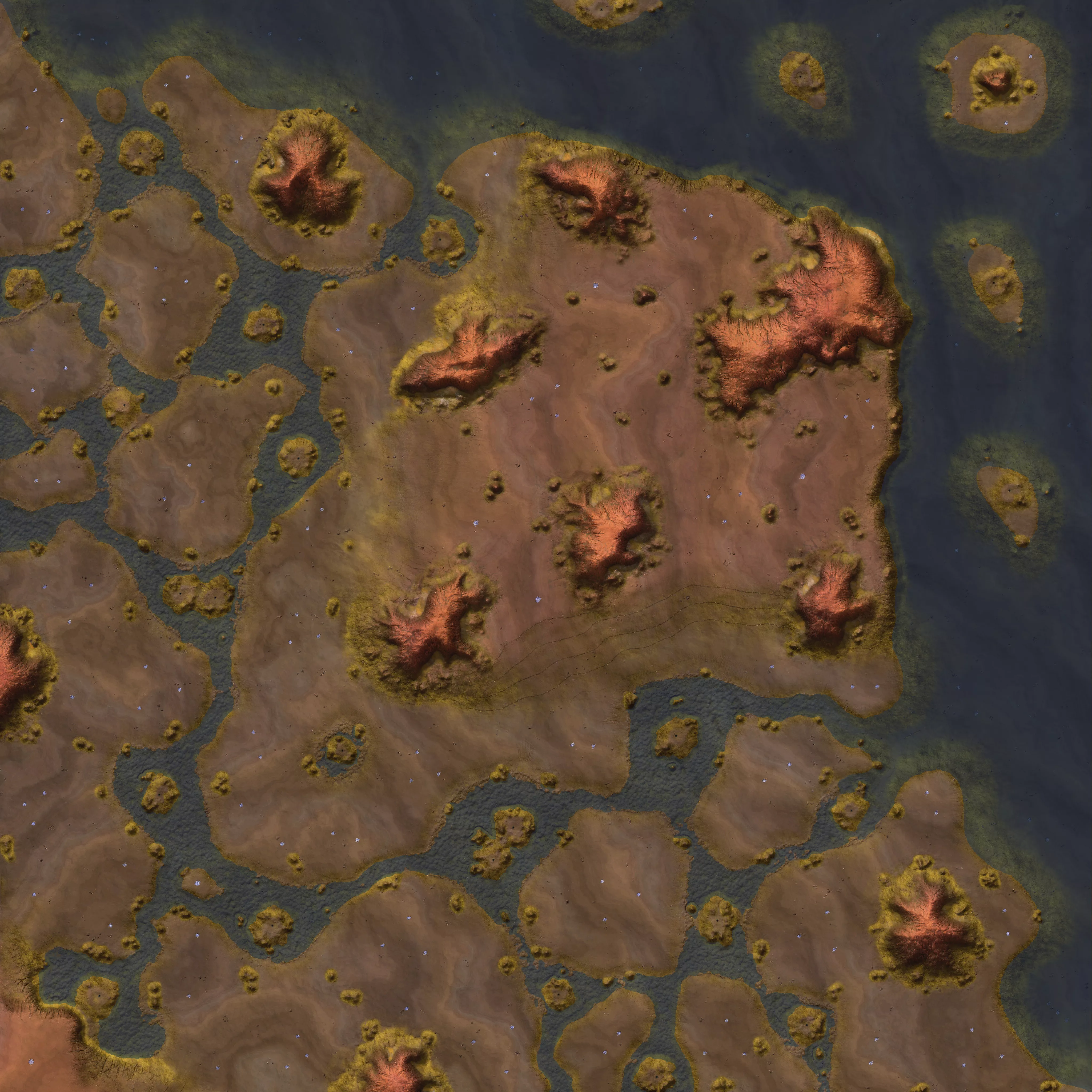 West vs South team game map. A lot of hot geysers spread here.