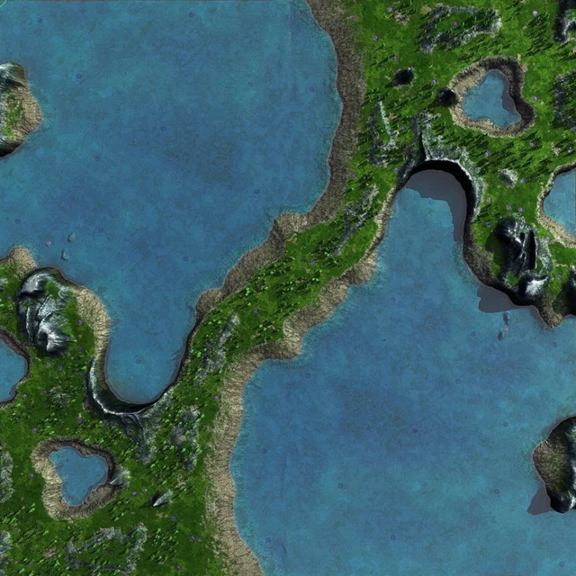 Island map, land fully surrounded by water