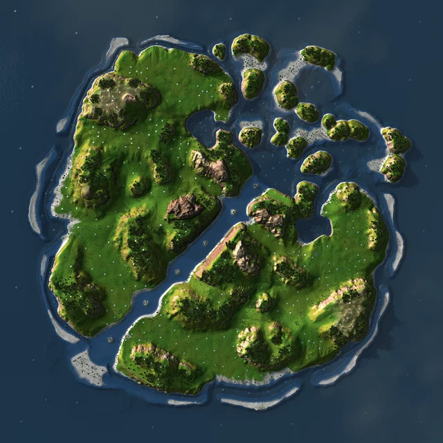 Island map, land fully surrounded by water
