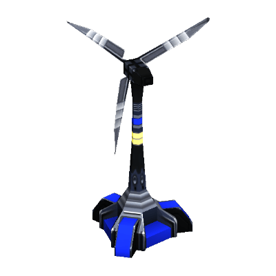 The Wind Turbine produces energy using the wind. Energy production varies depending on the wind speed, which also changes in real-time and for each map.